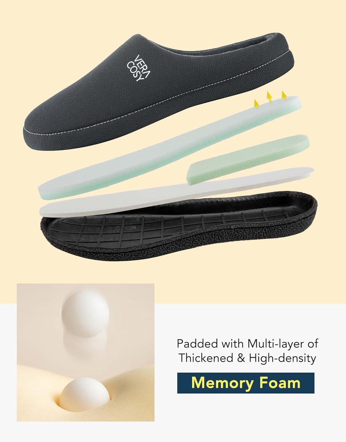 VeraCosy Men’s Cozy Knit Slipper Comfortable Memory Foam Indoor House Shoes with Non-slip Rubber Sole(Light Gray)