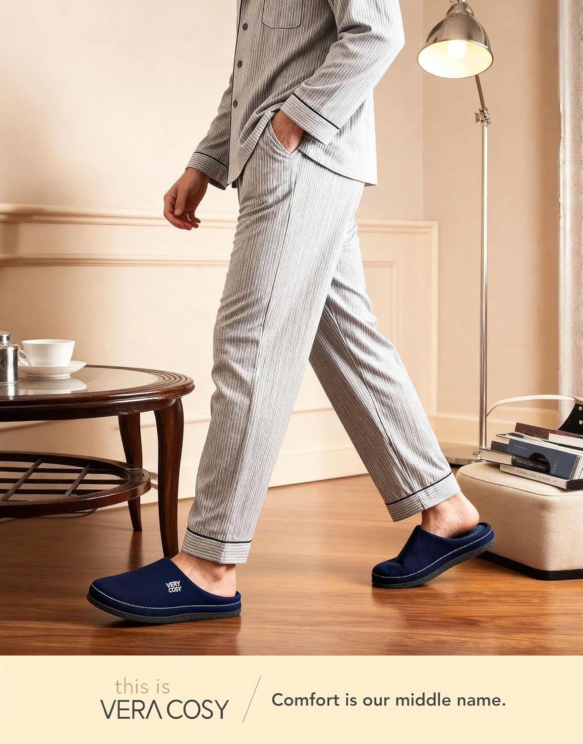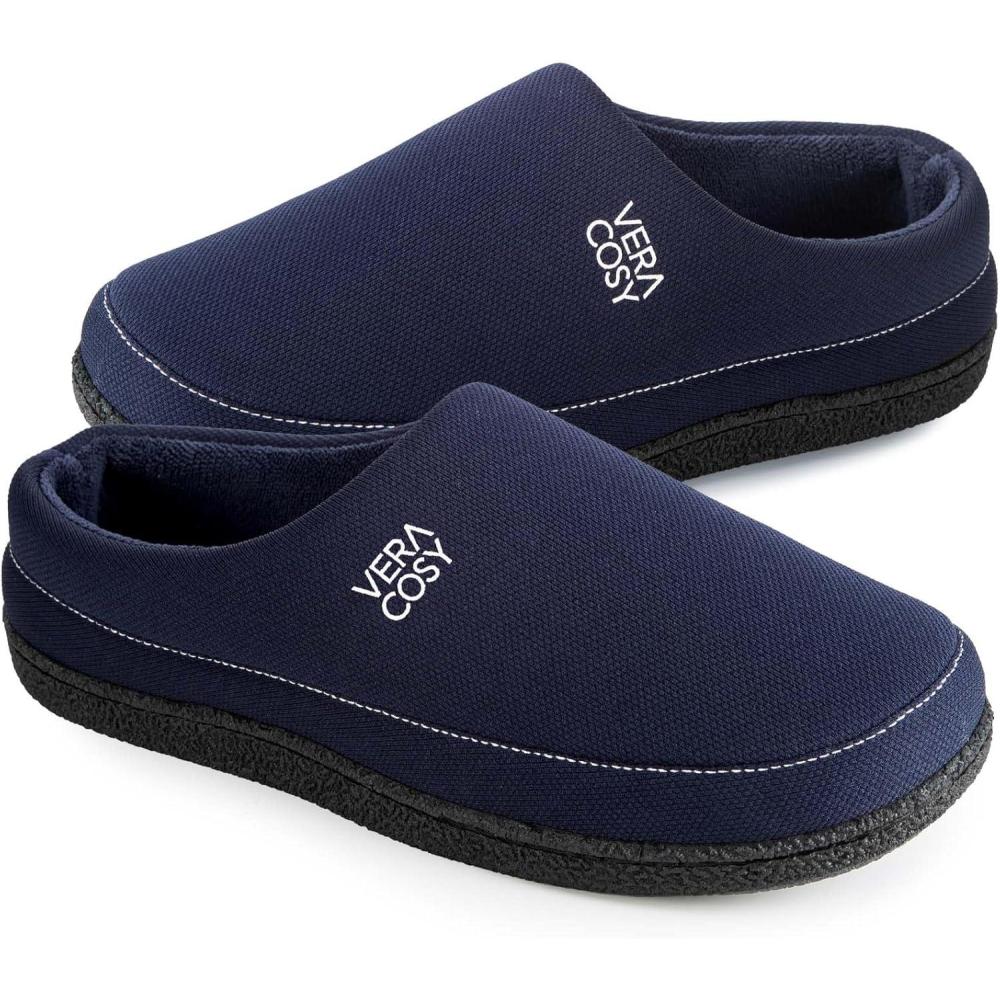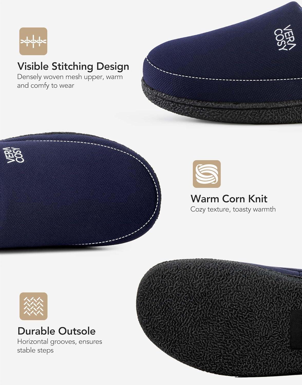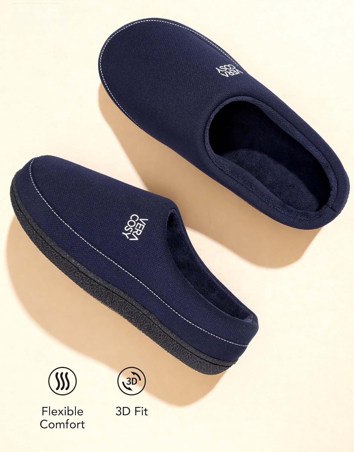VeraCosy Men’s Cozy Knit Slipper Comfortable Memory Foam Indoor House Shoes with Non-slip Rubber Sole(Navy Blue)