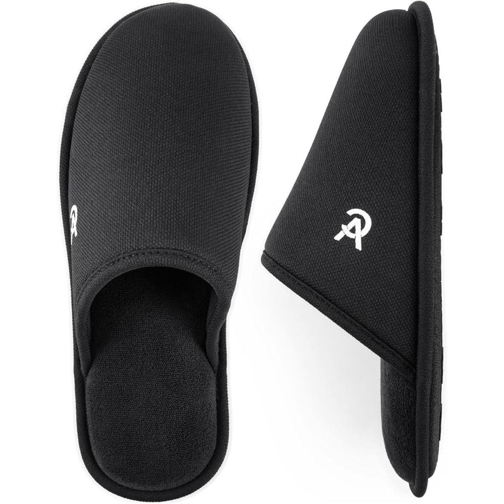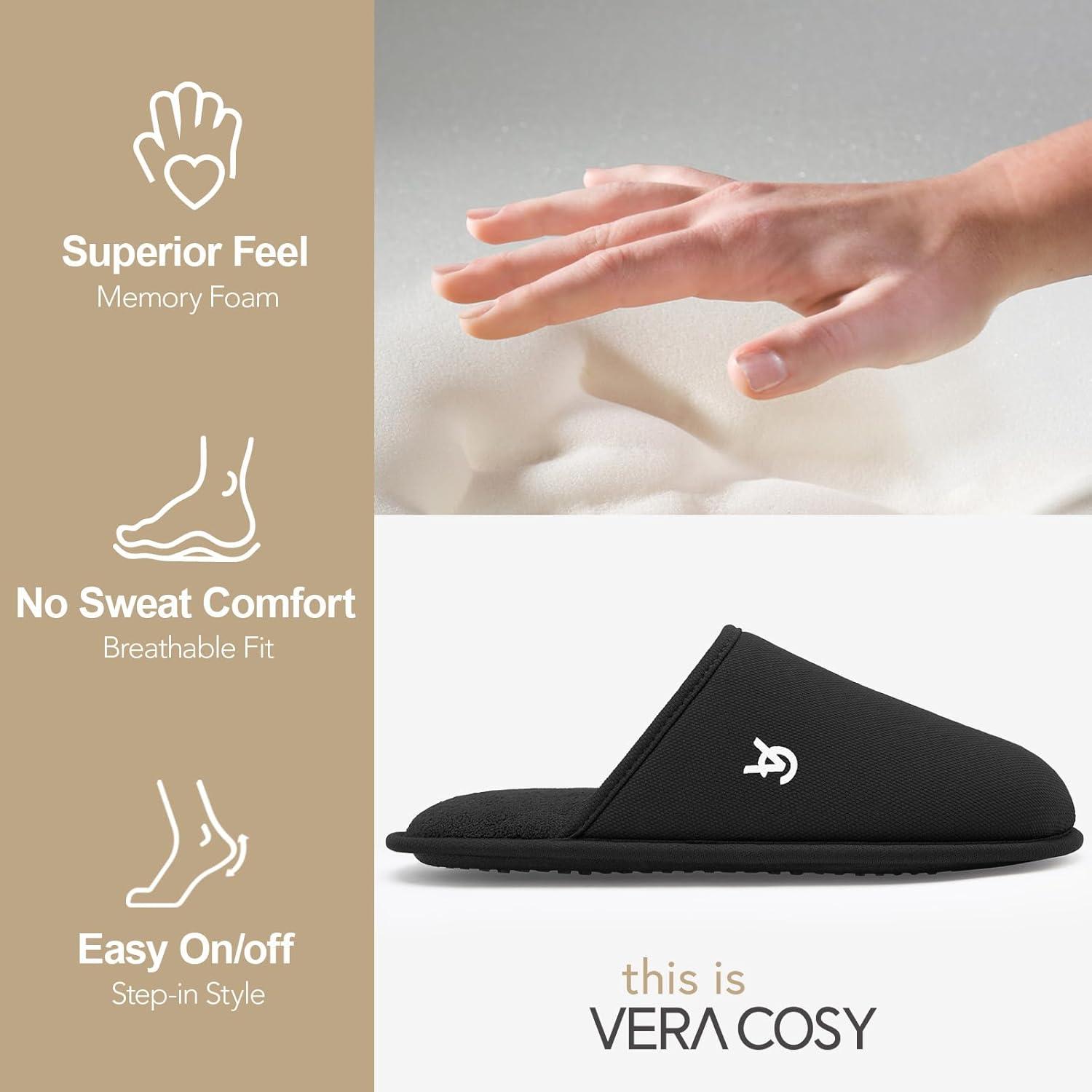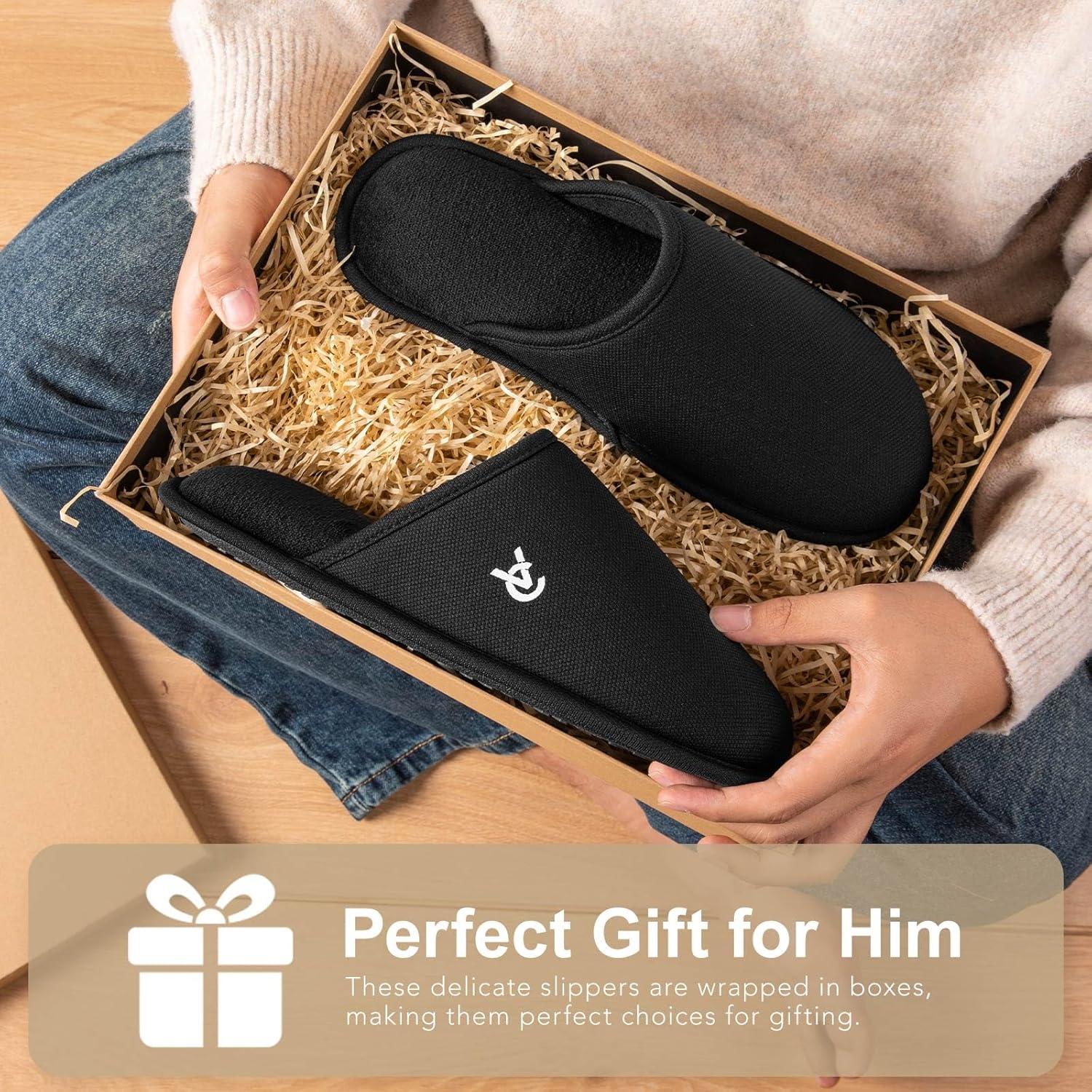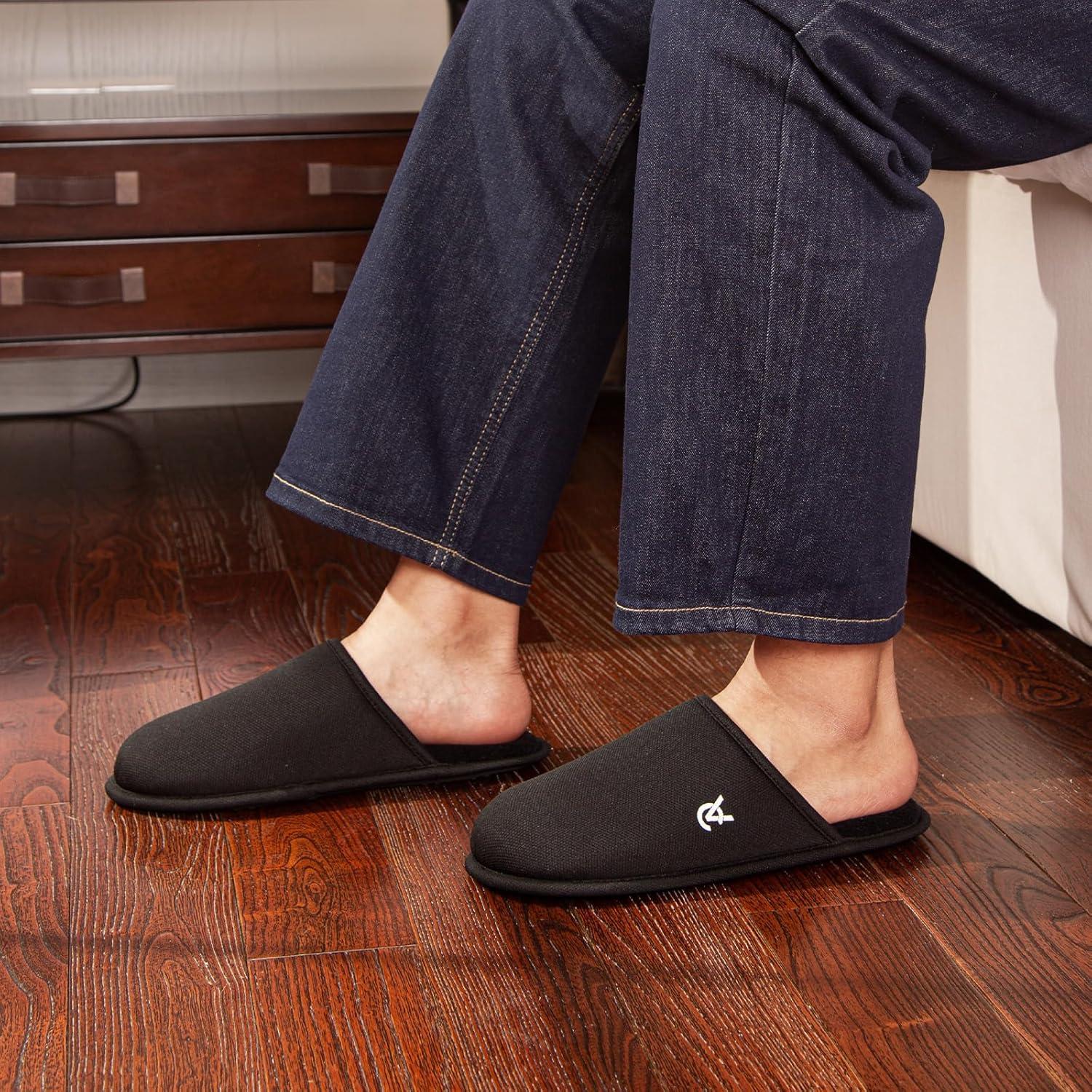 VeraCosy Men’s Knitted Scottish Slippers with Soft Memory Foam Non Slip Indoor Rubber Sole(Dark Black)