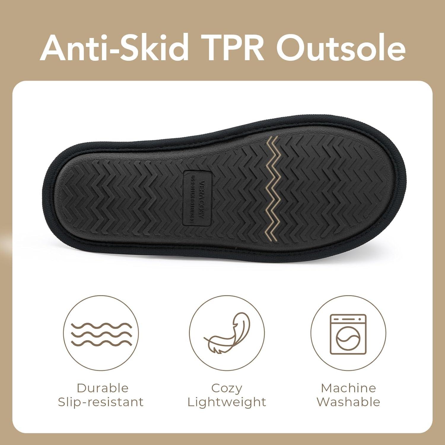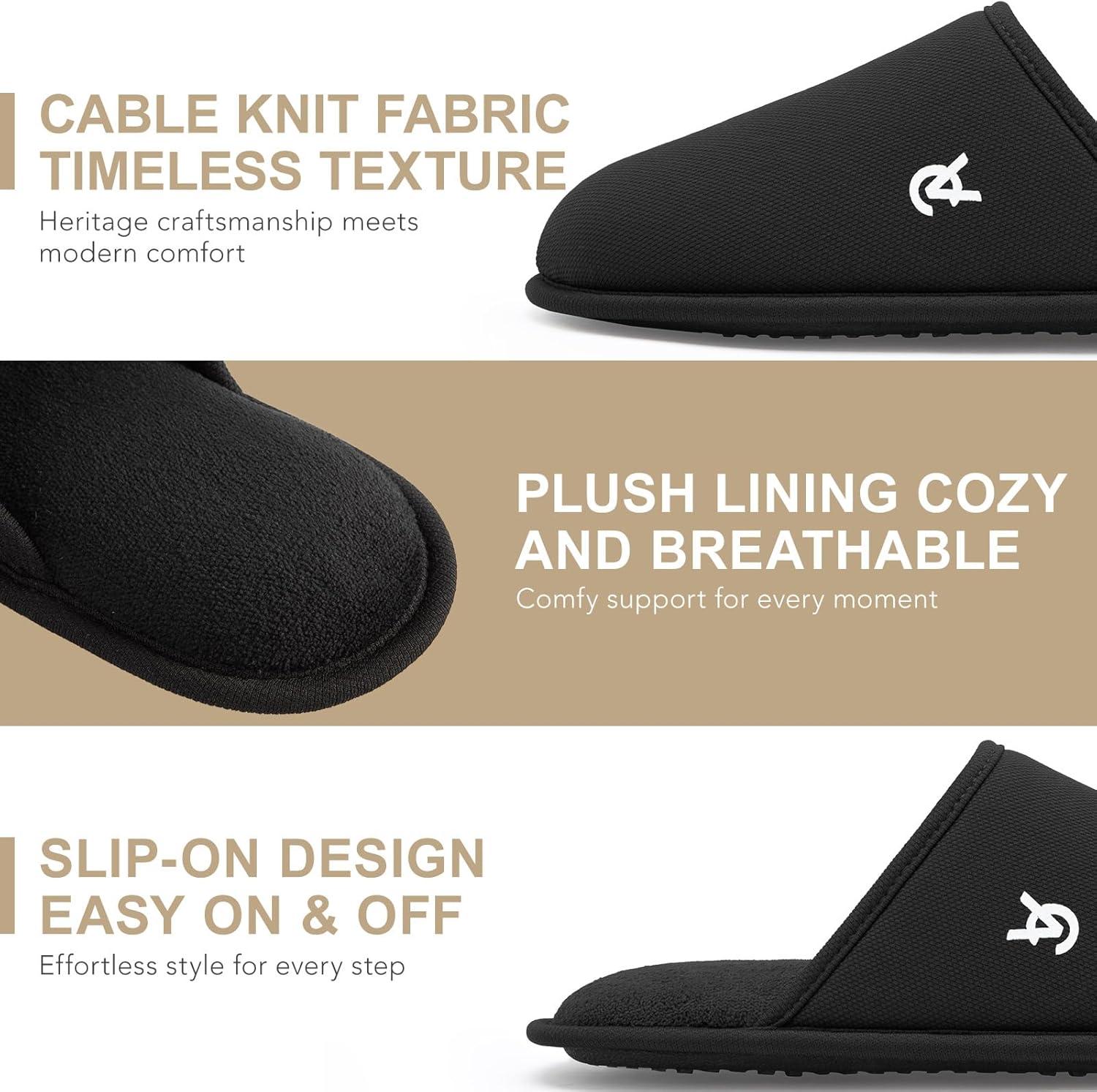 VeraCosy Men’s Knitted Scottish Slippers with Soft Memory Foam Non Slip Indoor Rubber Sole(Black)